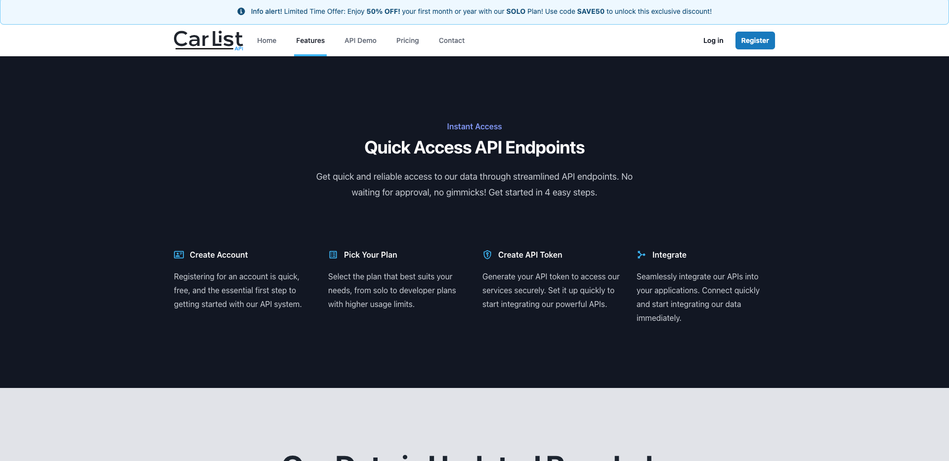 CarListAPI was created to solve these issues by providing an easy-to-use API that grants access to a wealth of automotive data, including vehicle specifications and features information. The platform offers: