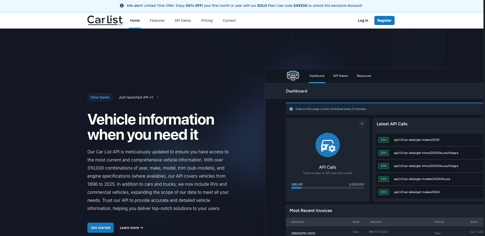 When I first set out to create CarList API, my goal was simple yet ambitious: deliver a fast, reliable, and developer-friendly service that exposes comprehensive vehicle data—years, makes, models, trims, engine specs and more — for cars, trucks, RVs, commercial vehicles, and powersports. Having spent years integrating inconsistent third-party data and wrestling with manual updates, I knew there had to be a better way.